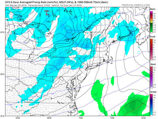 Looking ahead to the final days of January next week, it looks like one more storm system comes through, but another brief shot of milder air ahead of it will mean rain. Barring any drastic changes, big snows are going to have to wait until February. -Geoff