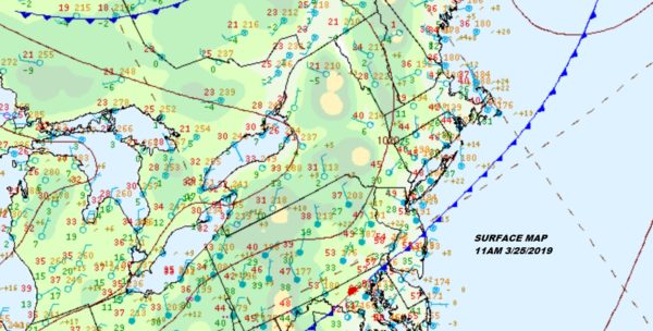 Such is Long Island’s battle with the spring season. South winds are temperature killers. By Saturday with the wind more from the southwest we should be able to push temperatures up into the lower 60s away from the ocean and there should be some sunshine and clouds. Sunday brings another cold front with the chance for a few showers late Saturday night and early Sunday morning. As long as the front keeps moving we could see improving weather conditions Sunday afternoon. That is the early look for the first weekend of April.
