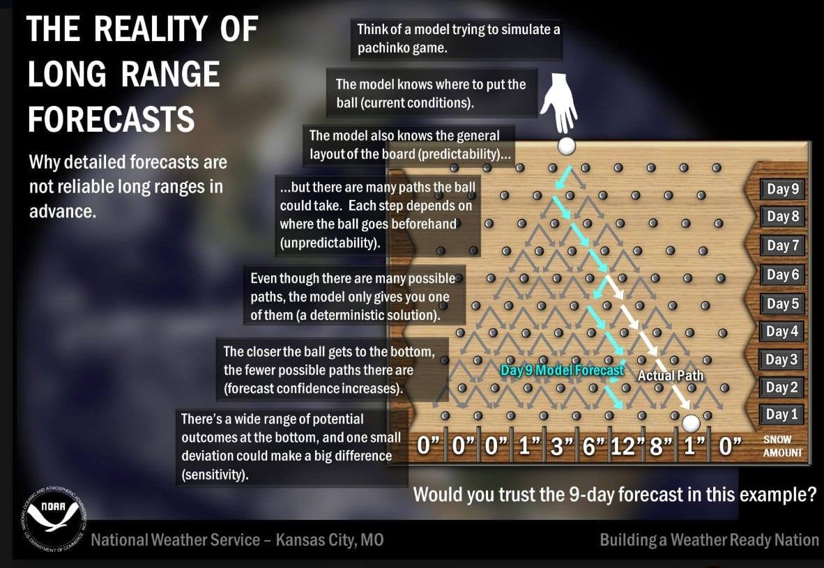 You have to remember that we are still 5-6 away from this happening, meaning that there is still quite a bit of uncertainty with a number of factors. Long range forecasts – especially detailed ones – usually come with a high degree of uncertainty. To better help understand this, take a look at the graphic from NOAA that I have posted below. (Any Price is Right fans in the house? PLINKO!) –Geoff