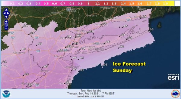 It would be enough to cause icing over a large area of the Northern Mid Atlantic to Southern New England. With temperatures close to critical levels it makes it had to figure how much snow falls in all of this. The ideal solution would be snow or sleet with any freezing rain on top of that. Freezing rain from the get go would be far worse and more dangerous outcome especially for roadways. The ice forecast for Long Island is an early one with amounts under a tenth of an inch of ice accretion forecast but expect this to change over the next couple of days.