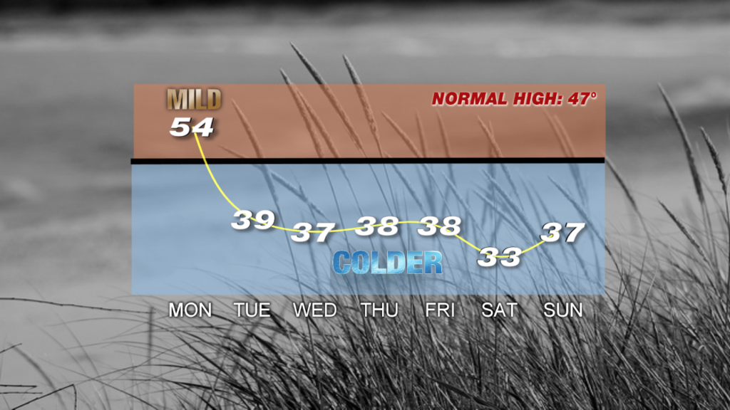 This morning Long Island has been dealing with some poor visibility, but conditions are improving rapidly. A dense fog advisory has been cancelled in Nassau, and Suffolk may soon follow suit. Roads are still slick from yesterday’s rain, but sunshine will gradually return this morning and dry things up. A stiff breeze will help that as well, with winds later today around 20 mph out of the west. As for temperatures, enjoy one more mild day before the cold comes back. We’ve got readings well into the 50s this morning, which is where they will remain throughout the day.