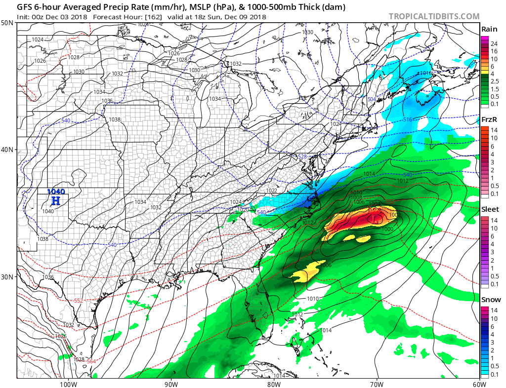 Now we talked a lot last week about a potential storm on Wednesday, I also mentioned on Friday not to worry about it over the weekend, and for good reason! That storm is not materializing for us, as anything that forms will be well offshore. That being said, a very similar solution is possible for late in the weekend. This morning there are two strong storms in the northern Pacific. One of those will move ashore along the west coast and track along the southern half of the US, eventually reaching the east coast late this weekend. With very cold air firmly in place, we will have to keep an eye on the interaction between than and other energy coming down from Canada over the Great Lakes, that could help to amplify and pull this storm northward.