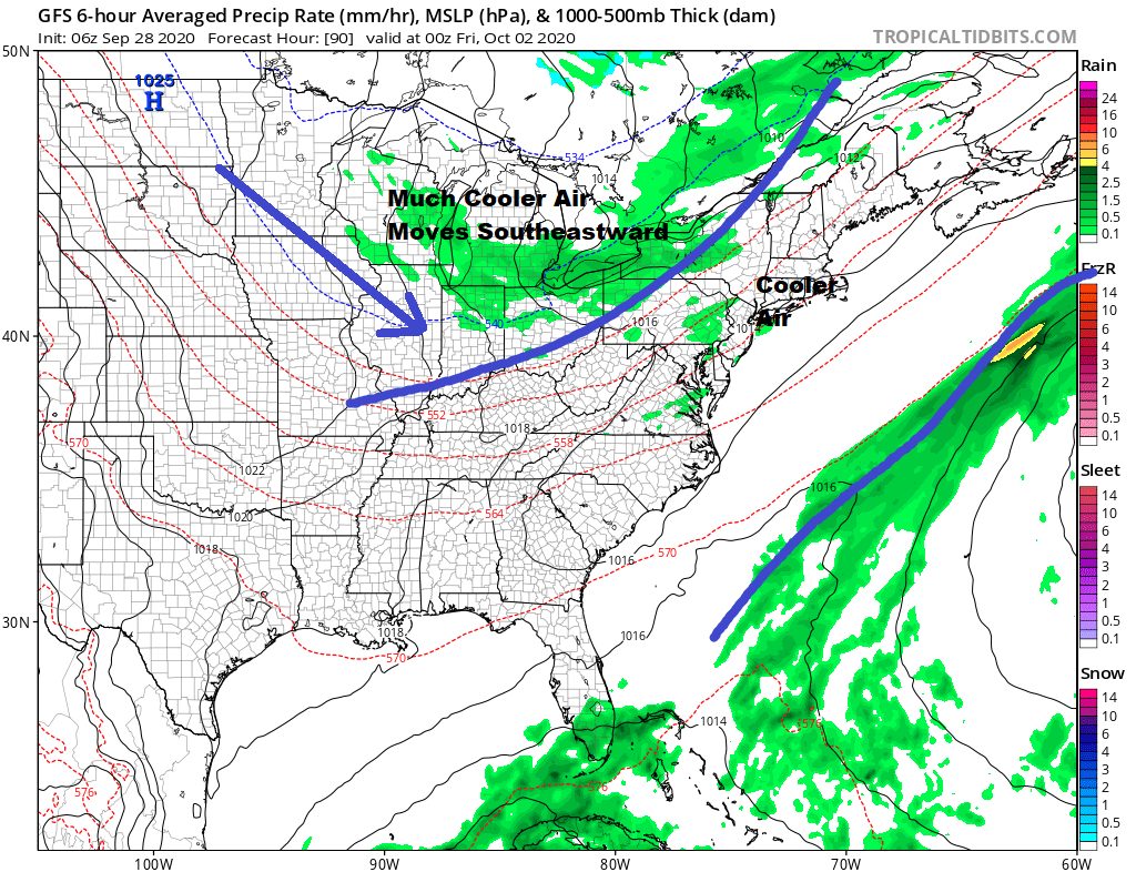 Behind the front is even cooler air that sets up for Friday and the weekend. We should have mainly dry weather conditions Friday through Sunday with some sunshine each day but it is going to be cool. Highs by day will be in 60s with nights in the 40s to near 50 and probably 30s in cool spots.