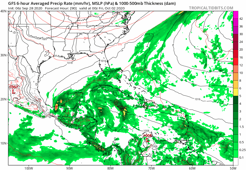 While the Eastern US turns cooler thanks to a strong trough in the Eastern US south to the Gulf States it creates a condition of lower than normal pressures in the Northwest Caribbean. Conditions there will be favorable for Tropical Storm development this weekend and whatever forms will likely emerge into the Gulf of Mexico though once there the longer range is a bit muddled regarding outcome. As always with these things it is wise to wait for something to actually develop before we begin to worry about it.