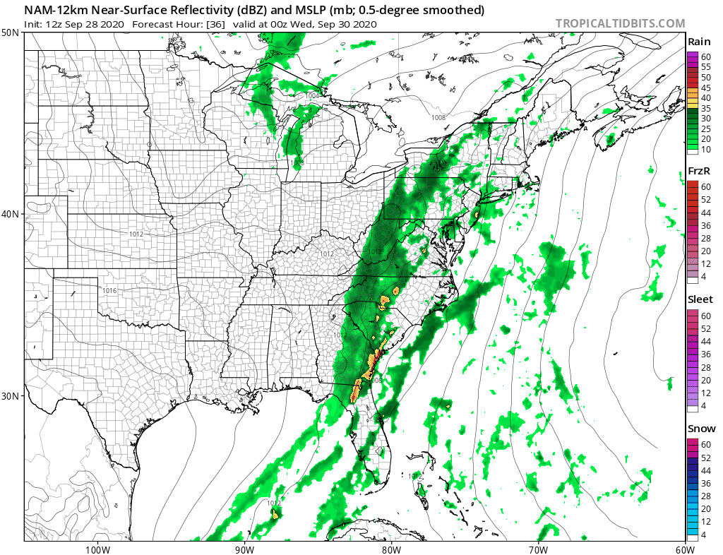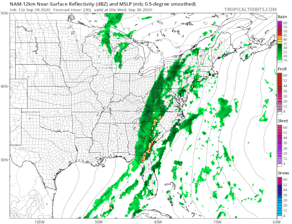 Warm humid conditions cover Long Island this afternoon. Temperatures are in the 70s. It is definitely sticky outside. The sun is attempting to break through the low and middle clouds that are around. This is a typical end of September day where summer is trying to hang on before the realities of the Autumn season take hold. A cold front is approaching that will stall out and that sets us up for a solid soaking rain later Tuesday into early Wednesday. The southerly flow for now is only producing a few widely scattered showers on the regional radar across the Northeast and Northern Mid Atlantic states and we should stay rain free overnight into Tuesday morning. Lows will be in the 60s.