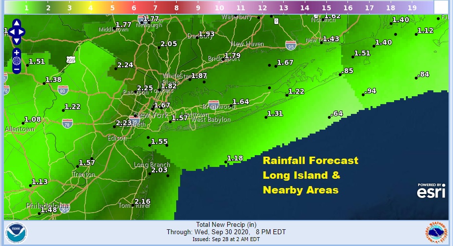 Just about all of Long Island has seen no rain for 17 straight days. This is a rather long streak without measurable rain and Eastern Long Island is experiencing moderate drought conditions right now. The rains coming should help. Tuesday morning will be cloudy and then as the day wears we should see increasing showers and downpours.
