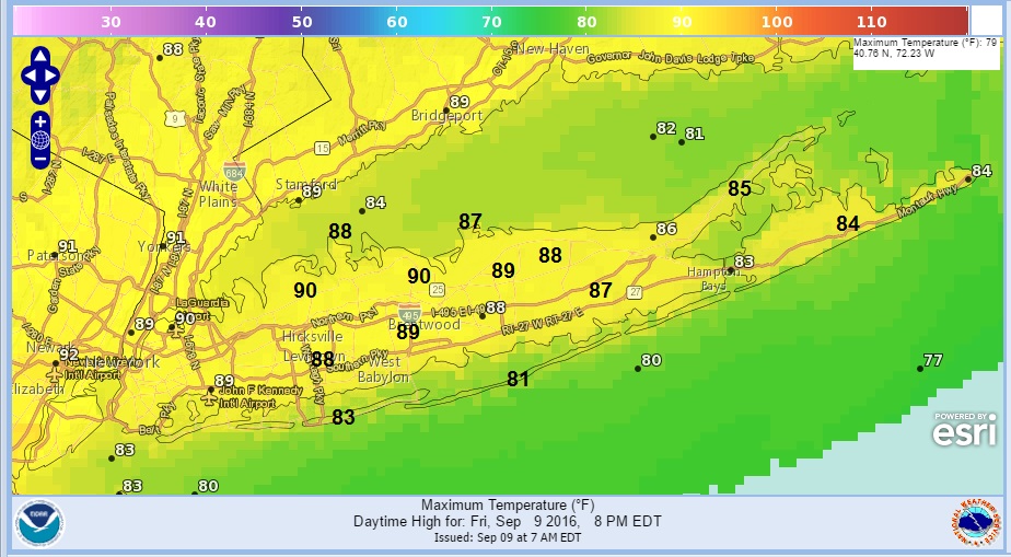 Heat Humidity and more heat humidity are the theme for today and Saturday. Also record high temperatures are possible today. The Islip record is 89 set back in 1996 and it is possible to nail that before the south wind takes over later this afternoon.