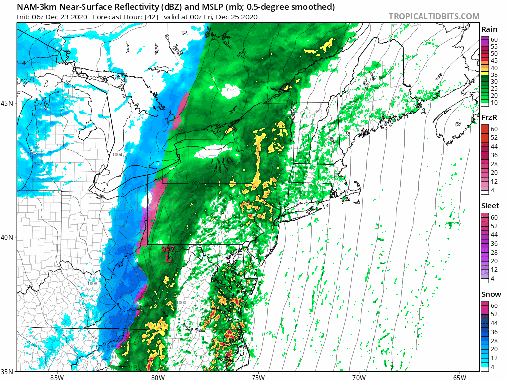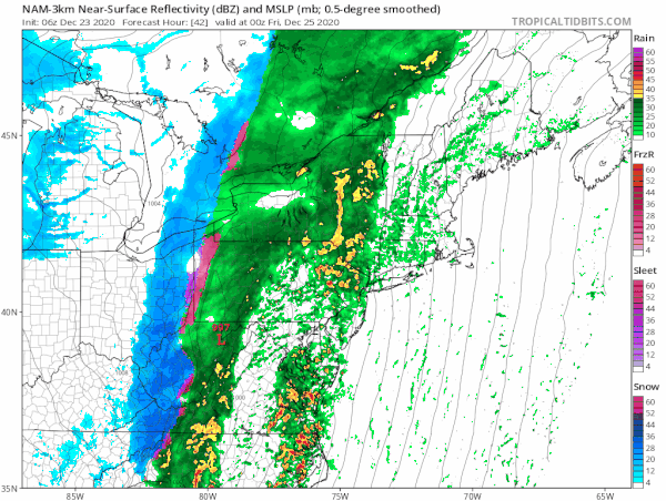 As the front nears and the pressure gradient tightens we will see winds gusting Thursday night to over 50 mph. The worst of the wind looks to be from midnight to 6am Christmas Morning. Then we have the heavy rain on the order of 1 to 2 inches and there could be some thunderstorms that roll in during the overnight.