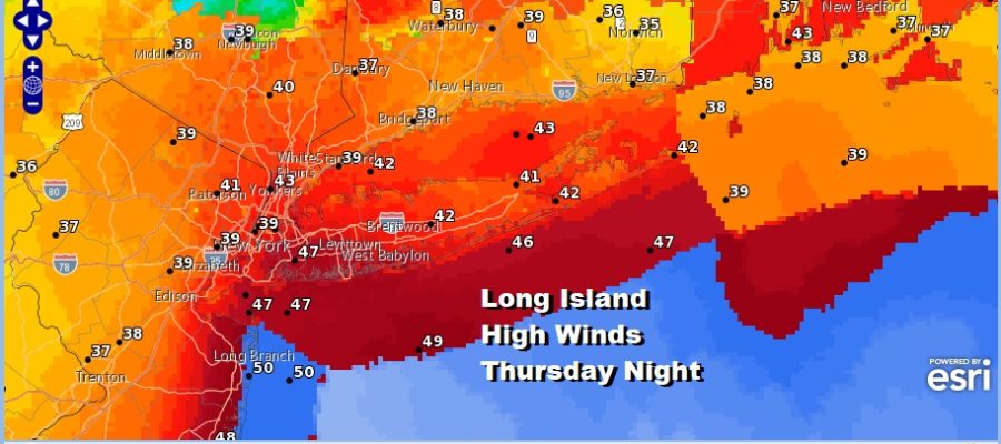 High Wind Watch Long Island Gusts 50 MPH Thursday Night Heavy Rain Thunderstorms