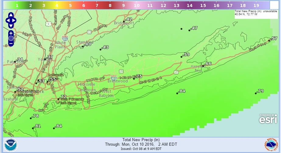 For Sunday Columbus day weather conditions will slowly improve west to east as you go west of the coast but for Long Island there may some lingering rain or showers in the morning before skies slowly begin to clear out in the afternoon. Sunday’s highs will be in the 60s. Monday Columbus Day looks sunny and nice with highs in the low to mid 60s.