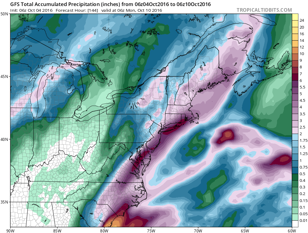 If Hurricane Matthew transitions over to post tropical cyclone, it could put Long Island inside the arc of heavy rain. The GFS model which takes a noreaster like track gives Long Island 6 inch plus rains. Now I’m not ready to forecast that yet but if this track is correct it could very well happen. We could cut the drought deficit in half in one day.
