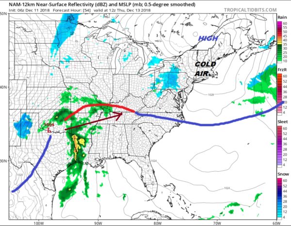 Warmer air begins to move northeastward ahead of the next storm coming out of the Southern Plains. That storm brings rain here late Friday into Saturday morning. This system is moving out a bit faster so the bulk of the rain will be Friday night into Saturday morning. This is good news for the Jets, who play at home Saturday late afternoon. It could be quite breezy at times during the day Saturday, as this will be a fairly potent system. Showers look like they may linger into Saturday night or Sunday morning, but dry air will return at some point on Sunday. Then we will see a shot of colder air coming in early next week. The overall weather pattern is one where temperatures are trending near average with weak shots of cold air coming in every few days. With Christmas exactly two weeks away, we will be keeping an eye on this pattern closely. -Geoff