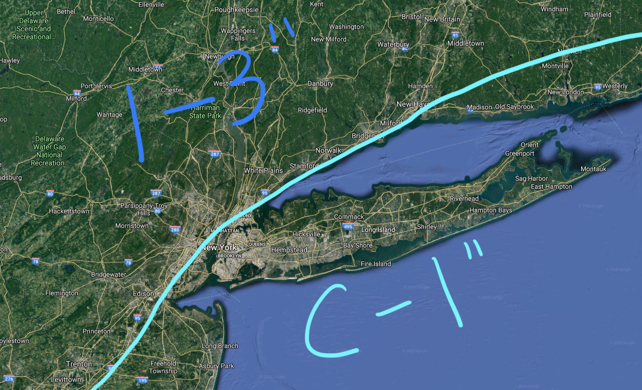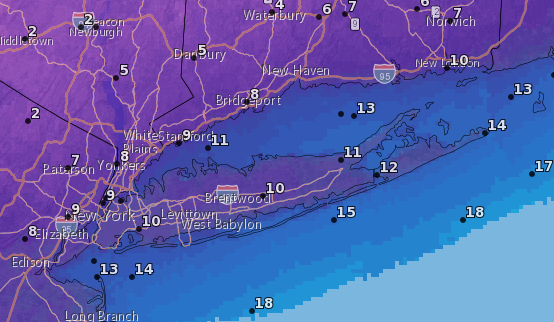 Areas south and east of the 3-6″ cutoff is where some changeover is likely to occur Sunday morning. For the south shore and east end of Long Island, I am expecting a rather quick changeover to all rain, which would certainly limit totals. However, I am very concerned about icy conditions across central LI and along the north shore.