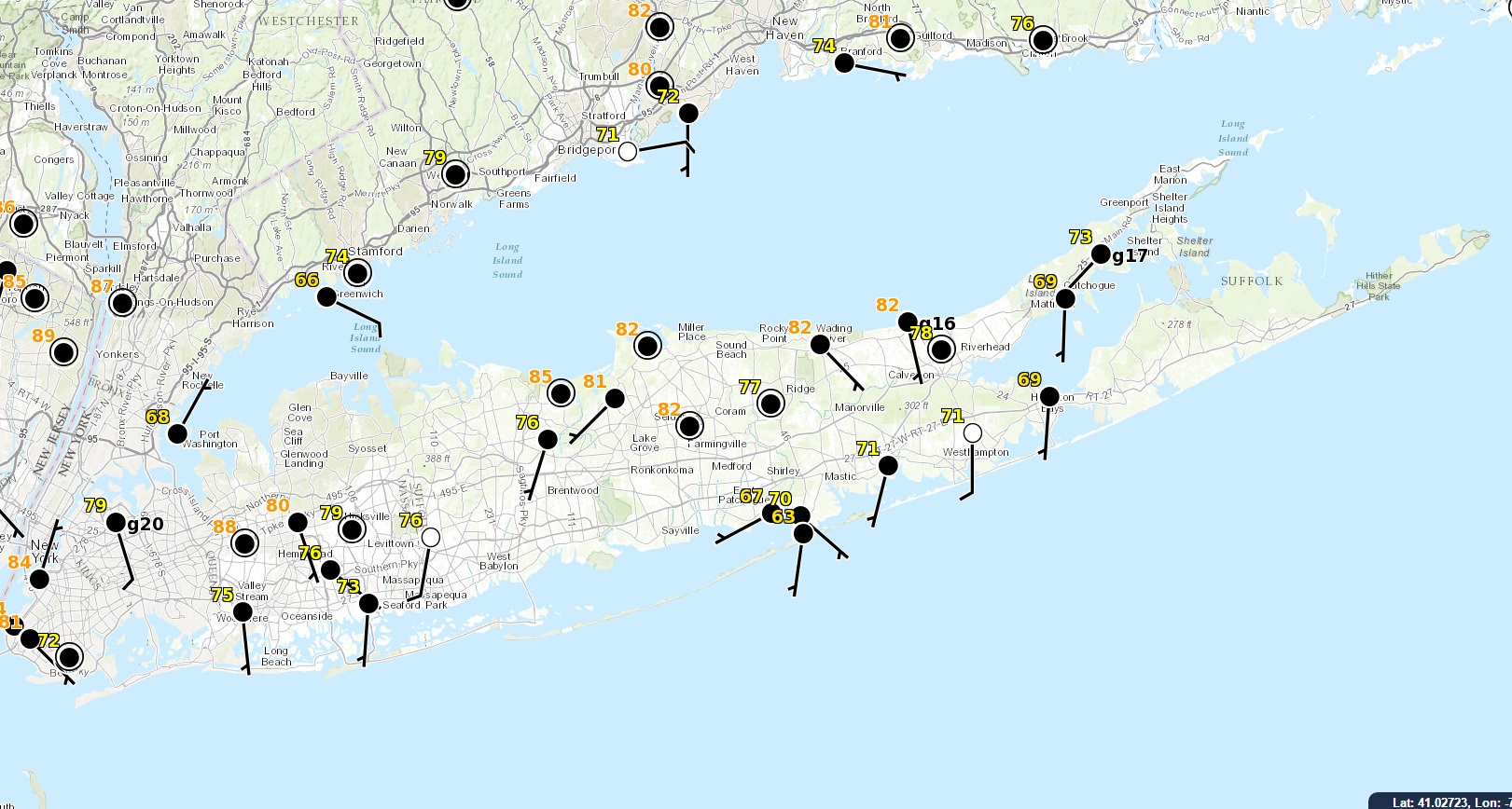 Long Island Cooling Off 2pm Temperatures