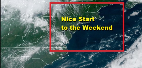This is definitely a nice beach day with sunshine over Long Island as well as much of the Northeast and Mid Atlantic states. It will be a nice day and high clouds from the west won’t get here until later this afternoon or evening. Humidity levels remain reasonable today but they will be rising quickly overnight and Sunday as a warm front pushes across the area from west to east Sunday morning. Temperatures this afternoon will top in the middle 80s inland and at the beaches it will be in the 70s.