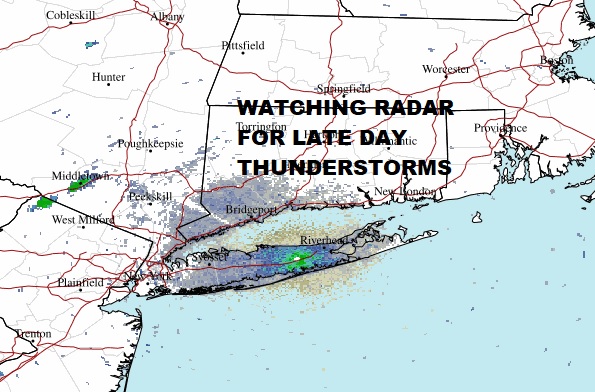 Sunshine is breaking through the clouds this afternoon and the daytime heating will take hold. Temperatures will rise into the 80s away from the ocean. Then our attention turns to the west as we watch for the development of any thunderstorms. Yesterday the marine layer kept us protected from thunderstorm activity. However that layer is disappearing this afternoon. The Storm Prediction Center has Long Island in a marginal risk for severe weather. Since more often than not, thunderstorms evade Long Island by going north or south or get destroyed on their approach, the best way to handle it is watch the radars late today.