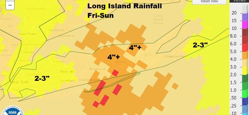 Rainfall amounts on Long Island over the three day period averaged 3 to 4 inches with a small area in Central Long Island finishing up between 4 and 4 1/2 inches so basically it was a month’s worth of rain in 3 days.