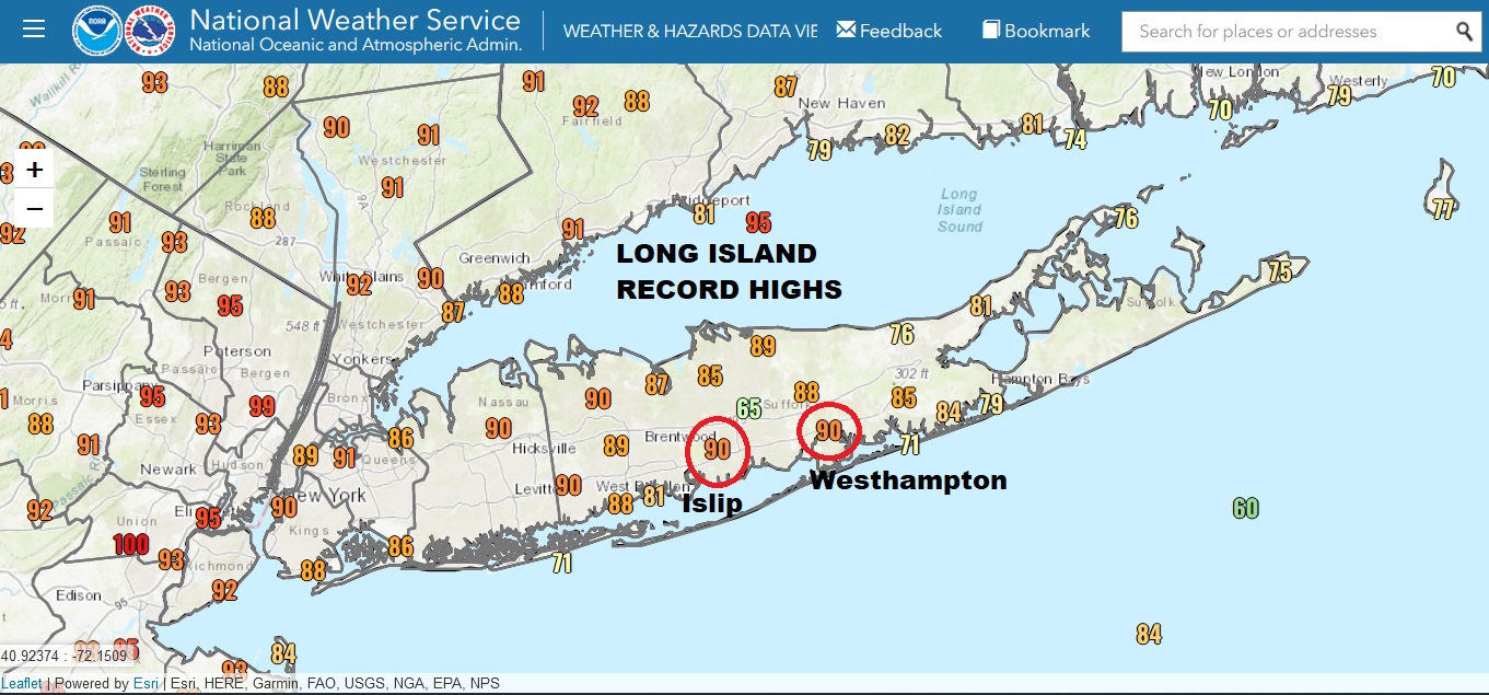 Long Island Record High Today