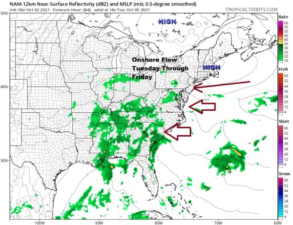 Tuesday through Friday will be all about high pressure to the north in New England and Eastern Canada and an onshore flow that lasts for the remainder of the week and even into next weekend. Everything comes to a grinding halt again as a ridge of high pressure aloft builds into the Eastern US and goes nowhere. In the spring a pattern like this would be a gloom and doom disaster thanks to the cold ocean but we are at the other end now with the ocean relatively warm. While the onshore flow will likely produce clouds each day and also some occasional shower issues or drizzle, there will be dry stretches as well. If enough of the high to the north builds southward we could see some sun from time to time as well particularly during the second half of the week. Temperatures will be in the upper 60s and lower 70s for highs Tuesday through Friday with nighttime lows in the upper 50s and lower 60s. There are no major issues to concern ourselves with at the moment. Late week or over the weekend there are model hints of tropical cyclone development in the Northwest Caribbean to the Bahamas which would be something we might need to watch but for now nothing is imminent or guaranteed so we can just put it in cruise control into next week.