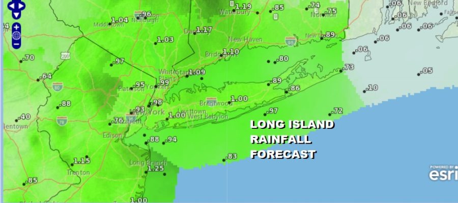 The boundary won’t be moving much until Wednesday night into Thursday when the warm front goes by and the cold front follows. Look for clouds and maybe a shower or two overnight into Wednesday morning. Later Wednesday into Thursday at some point, more numerous showers and heavy downpours will develop around Long island. How much gets in remains to be seen but we should see some rain out of this. Temperatures will be in the 60s tonight and in the 70s Wednesday. There should be some dry periods in the mix. Rainfall amounts should reach about an inch or so however if heavier downpours develop and settle overhead, amounts could be higher.
