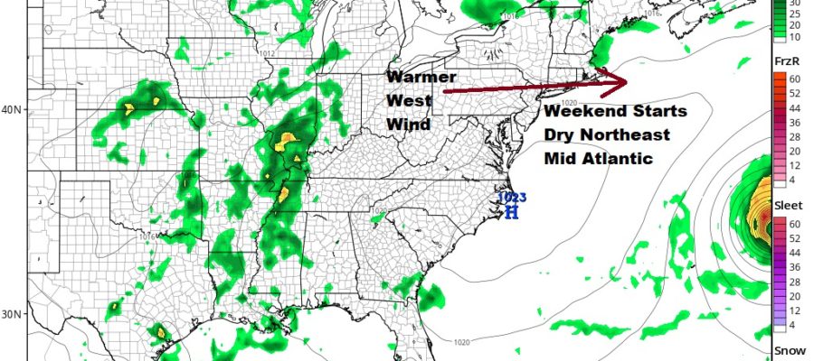 Sunday brings a cold front but it won’t be close enough to produce anything more than just some clouds in the mix. There will be some sunshine Sunday and a west wind will help to warm things up. Highs Sunday will be in the mid to upper 70s. No rain is forecast through at least the daytime Sunday and probably into the first part of Sunday night.