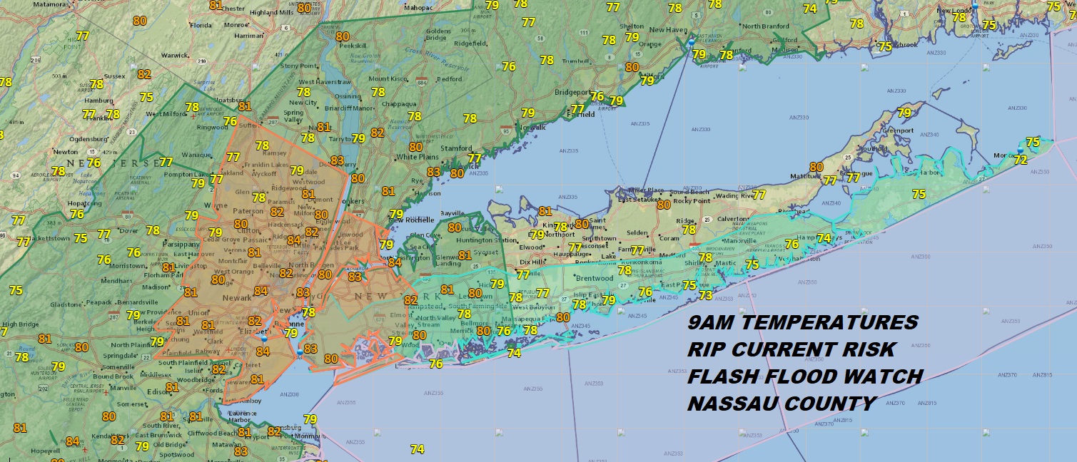 Long Island Severe Weather Risk 4-8pm Strong Thunderstorms Flash Flood Watch Nassau County Rip Current Risk Beaches