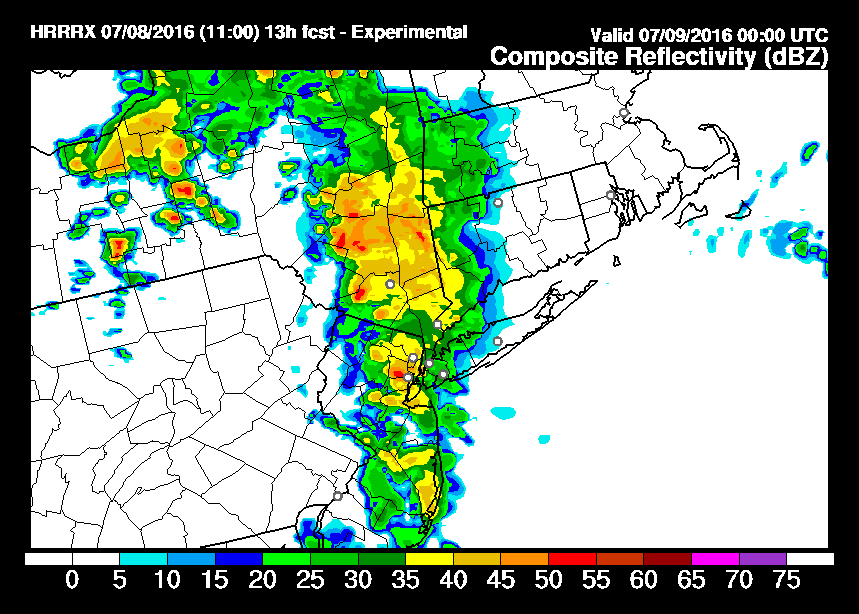 Long Island Severe Weather Threat HRRR MODEL 10PM