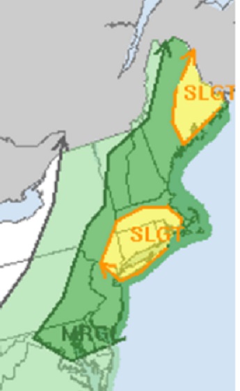 The Storm Prediction Center this morning raised the risk of severe weather over Long Island to “slight risk” from marginal risk. A cold front is approaching and weather models do seem to develop thunderstorms that move across Long Island this afternoon. As we know Long Island always seems to have some sort of boiler plate over it especially in Suffolk County. At this point it is a matter of keeping eyes on the radar and going from there. There should be nothing of consequence through Lunchtime. The risk period grows after 1pm.