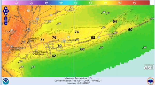Only south facing shore lines will be dealing with the sea breeze which will work its way inland during the mid to late afternoon. Other than that, everyone participates and enjoys some great weather the next 2 days. About the only negative I can think of is that everything will start budding and blooming which means pollen and allergies will begin to take hold.