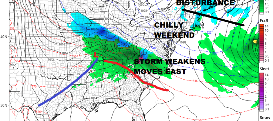 Next week starts chilly but dry for Monday into Tuesday. Monday should be mostly sunny with highs in the low to mid 40s. Tuesday we will see sun and arriving clouds as milder air tries to arrive but we will be fighting off a northeast wind for awhile. Highs again will be in the 40s to perhaps near 50. Wednesday we should be into the 50s with some sun and clouds. The next chance for rain will come late Thursday into Friday as a cold front moves through and a wave develops on that front. After that Easter Weekend is looking dry and a bit on the chilly side.