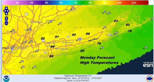 We will continue the rain free conditions on Monday with sunshine hot and humid conditions with hgihs in the upper 80s and lower 90s with no thunderstorms forecast. The same will hold for Tuesday. The next cold front will be arriving late on Wednesday which means we could see some thunderstorms late in the day. All in all a great Long Island summer weekend lies ahead of us.