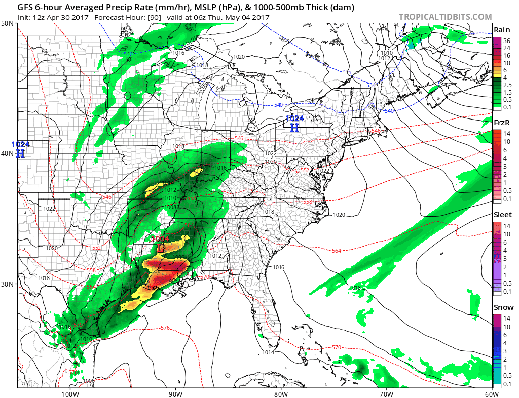 Weather models are bullish for a soaking rain of a couple of inches from this system as the GFS model among others indicates. The pattern looks to last well into the week of May 8-15th which probably means cooler than average temperatures, more days with winds off the ocean, and chances for more rain along the way.
