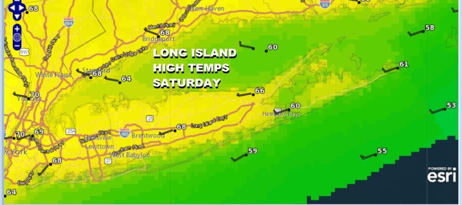 This building high will shield Long Island and the Northeast from rainy weather to west and south. Sunday should be a very good day and there is room for a little upside in temperatures. Sunshine should take highs to a range of 70 to 75. Again, local sea breezes will develop along the South Shore and East End and temperatures will be in the cooler 60s in those areas.
