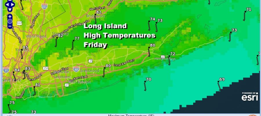 One thing that we will not have this weekend is 90 degree heat on Long Island. Temperatures are actually going to be a little cooler than average and you can thank the south wind which will be in play at least into Sunday before it backs more to the southwest Monday and Tuesday. Today we will be dealing with some hazy skies thanks to wildfire smoke from Canada but that should start to ease Saturday.