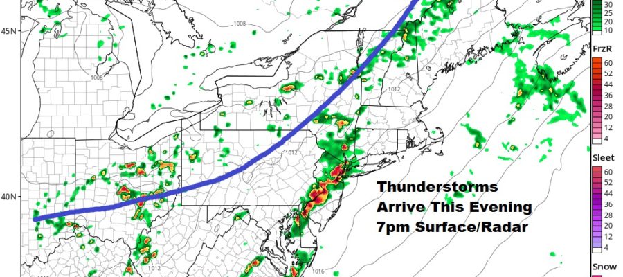 We will be watching to see if wind turn more southwest this afternoon and evening which could warm things up a bit. Temperatures will likely hold in the 60s all day. This evening we will watch a line of strong thunderstorms approach. They should reach their peak intensity between 5 and 7pm and then weaken somewhat (as they normally do) once they pay the outrageous bridge tolls and head into Long Island.