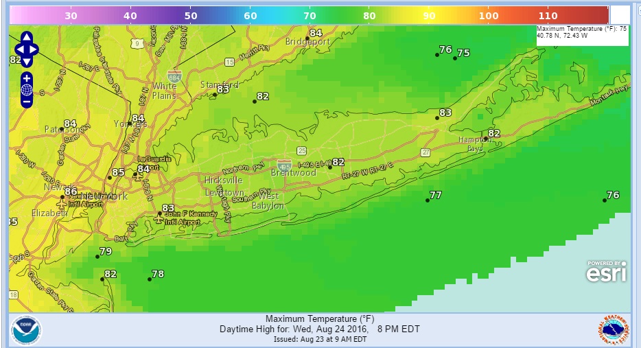LONG ISLAND WEATHER 10AM TEMPERATURES