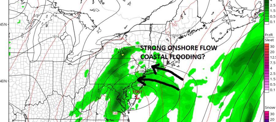 Friday brings a new moon and we will have been under a northeast flow for days. Low pressure will develop to the south and it will create a stronger northeast to east flow which increases the chances for some coastal flooding issues. Friday we will see the highest tides of the spring. We will continue to monitor the situation regarding the possibility of coastal flooding. What keeps this from being a serious coastal flooding issue is the lack of a strong high to the north. What could make it more of an issue is if that low off the Delaware coast winds up being stronger than forecast.