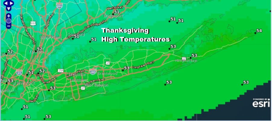 Thursday Thanksgiving Day will be a day of some sunshine with highs on Long Island in the lower 50s and again no major or for that matter even minor issues.