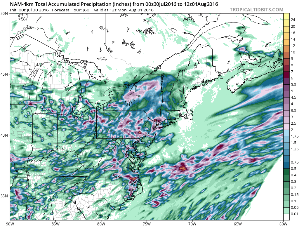 Long Island Weekend Downpours Rainfall Forecast Through Monday NAM 4KM MODEL