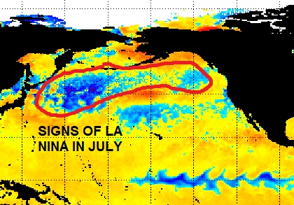 Last year even with a major El Nino pattern which trumped everything else in the atmosphere and every other forecast tool like Siberian Snow Cover growth is gone. The National Weather Service over the last few days has cancelled the “La Nina Watch” for this winter as it appears it is not going to develop, or at least not going to develop in time to effect the winter months. Take a look at what has happened to the sea surface temperatures in the Pacific. Back in July the beginnings of La Nina were showing up in a pool of colder than normal temperatures across the Northeast and Northwest Pacific. The cooling of the northwest Pacific would have been a significant development. Warmer than normal water temperatures there would favor strong ridging in the Northwest and open up the cold air spigots from the Arctic regions. Colder sea surface temperatures in this region would have favored warmer than normal temperatures in the east .
