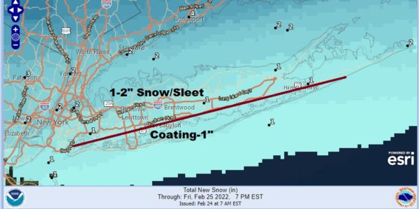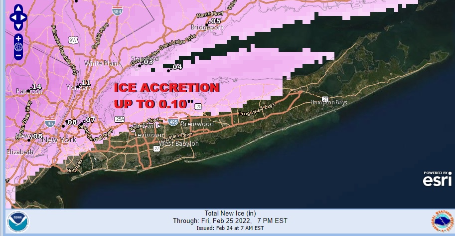 Winter Weather Advisories are up for Northern Nassau and Northwest Suffolk County for tonight and Friday morning. The main issue will be a period of snow and a longer periods of sleet that goes to freezing rain Friday morning and then rain. The risk for some ice accretion will be along the north shore north of the Long Island Expressway. Ice accretion will be on the order of up to a tenth of an inch. South of the LIE ice accretion should diminish as you get closer to the shore.