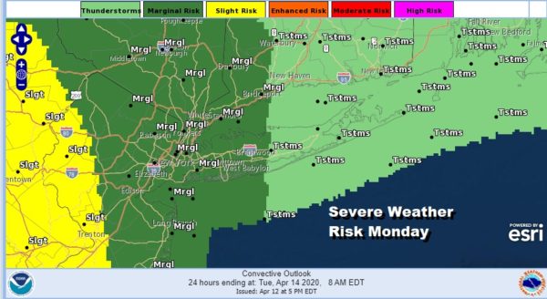Monday will be just a very bad day. Strong winds all day long will combine with heavy rain and some thunderstorms. The Storm Prediction Center has Long Island on the edge of a marginal risk of severe weather at the moment but we could see this forecast adjusted by SPC Monday morning.