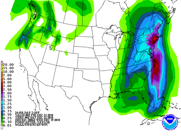Additionally we will have gusty winds out of the SE that will help push water ashore, leading to coastal flooding. Winds may gust 40-50 mph. As to the degree of coastal flooding, right now it looks like minor to moderate, which means water levels 2-4 feet above normal tides. There is a full moon on Saturday, so it will be interesting to see if that exacerbates the problem. Hey, at least it will be near 60 degrees Friday!
