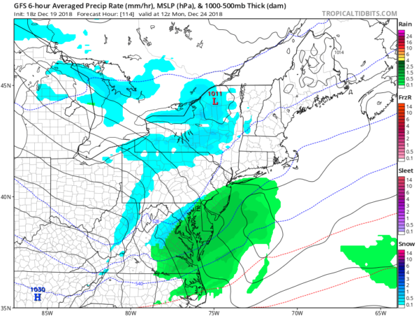 Christmas Day looks cold and dry, but we will have to keep an eye on another system the day after, which could bring some more bullish snow showers to the area. Generally cold weather is expected right into the New Year, so any storm systems will warrant close attention. –Geoff