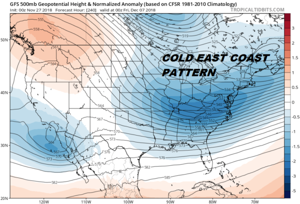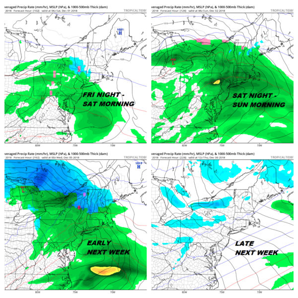 Looking at the long term forecast, a stronger front will move through early next week and set temperatures back down to below seasonable levels. Cold air looks to remain in place through the first week of December, so I will be the lookout for any potential storms.