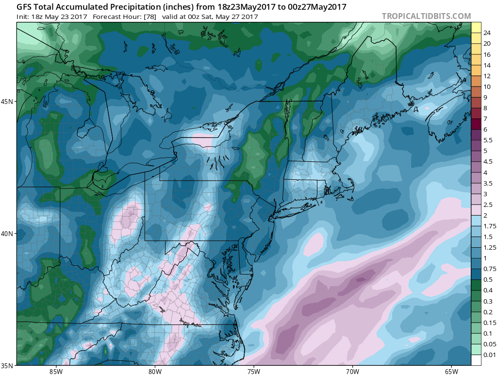 As for the holiday weekend, Saturday will be the best of the 3 days for sure though there will be clouds around but some sun will be in the mix. Highs could reach into the 70s. Then more clouds with some rain or showers developing late in the day Sunday and Sunday night. Another round of showers late Monday Memorial Day.