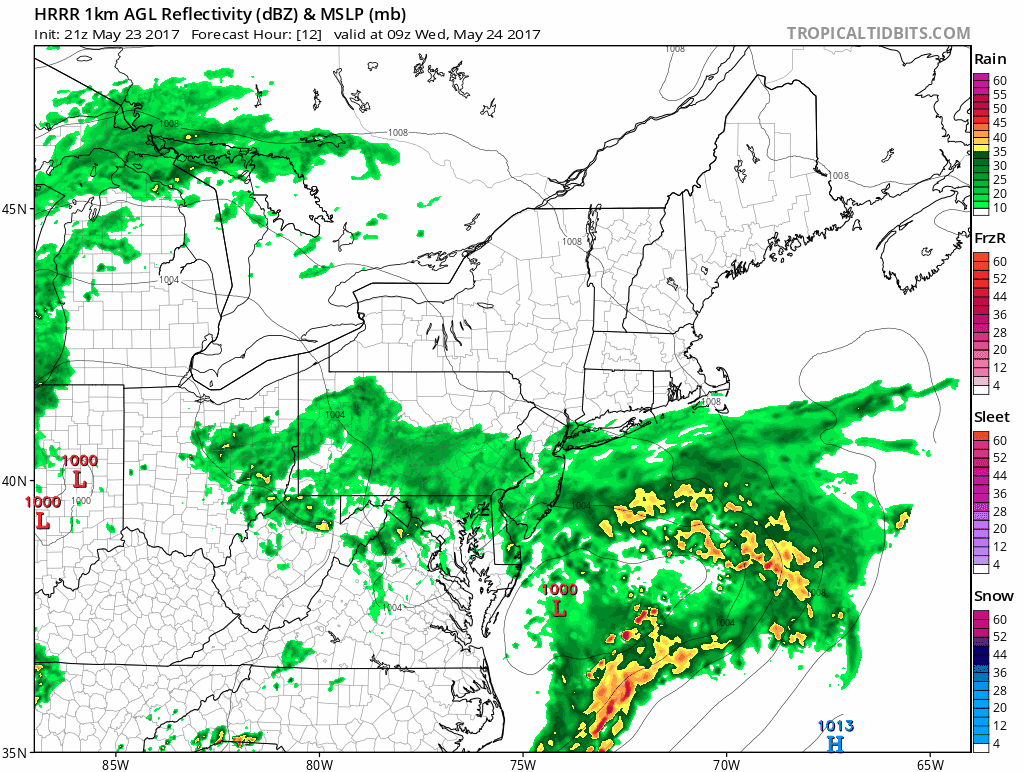 RAIN CLIPS LONG ISLAND HRRR MODEL WEDNESDAY MORNING 5AM-11AM