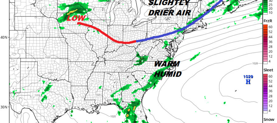 Weather conditions on Long Island improved somewhat this afternoon as the satellite & radar trends show dry air pushing the rain southward. There isn’t enough dry air to completely clear skies out but at least the rain has stopped for now and it should be dry overnight into at least part of Friday.