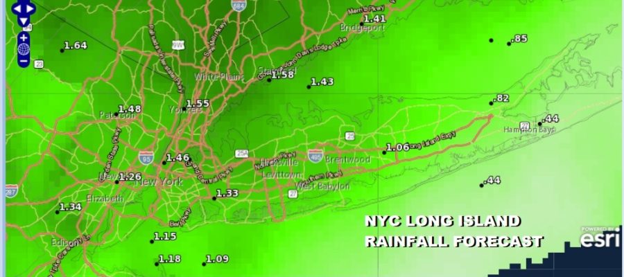 Rainfall Forecast Amouts Through Tuesday Long Island