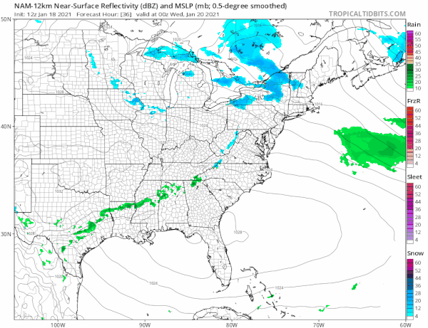Long Island hasn’t seen measurable snow since December 15th-16th. A weak upper trough and cold front will be moving through Wednesday morning and we could see some scattered snow showers for a couple of hours Wednesday morning mainly between 7am and 10am. There is the outside chance there could be a coating of snow in some places but this is weak system and it should not amount to much.